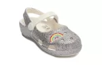 Die (PS) Crocs Outdoor Flat Heel Shiny Sports Silver Sandals bietet außergewöhnlichen Komfort und modischen Stil. Mit Merkmalen wie 206370-93R, 29/07/21, Rubber Sole, Closed Toe, Outdoor, Lebensstil, Flat heel, Summer/Spring, SILVER, Silver ist dieses Modell perfekt für Kinder geeignet und ergänzt verschiedene Outfits.
